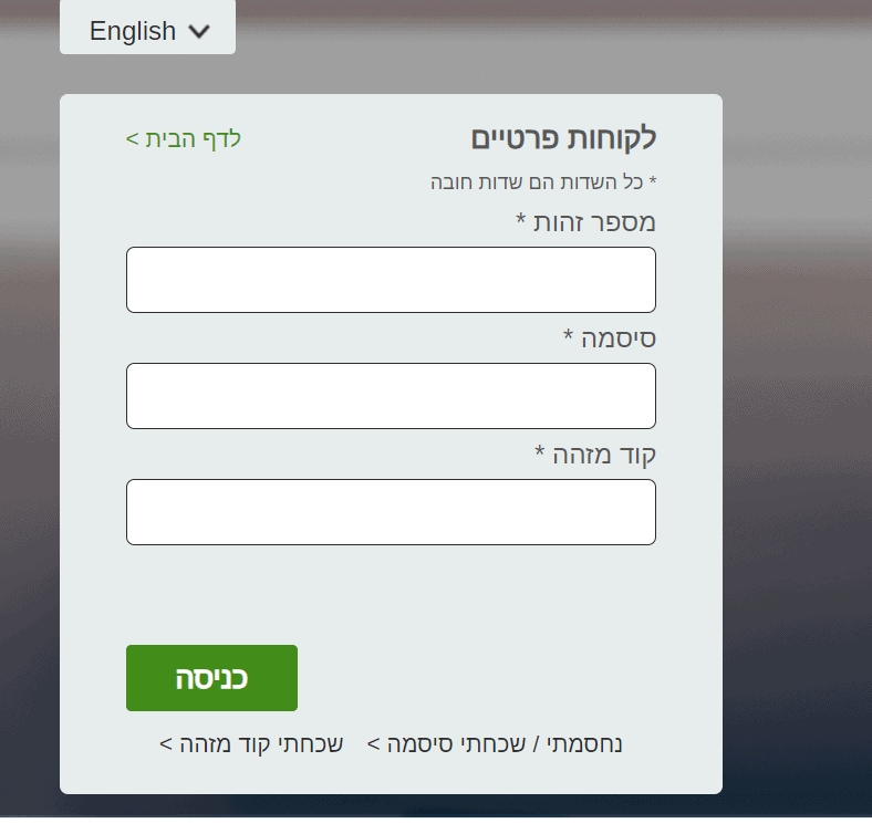 2. הקלידו את מספר הלקוח וסיסמת הכניסה