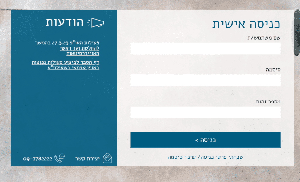 איך להיכנס לאזור האישי של האוניברסיטה הפתוחה?