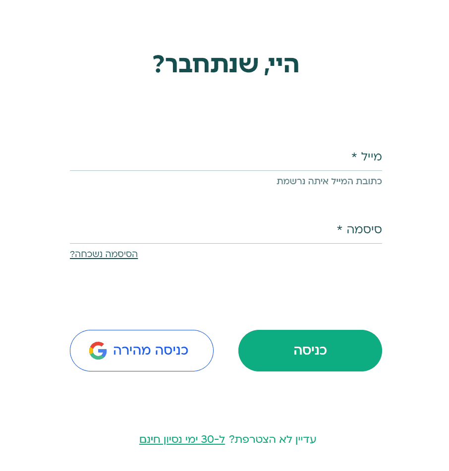 2. הזן את פרטי הכניסה שלך, כולל כתובת המייל והסיסמה שקיבלת בעת רישום לאתר.