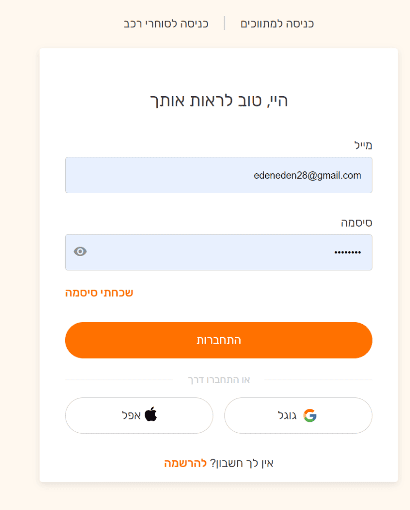 - אם הפרטים שהזנת נכונים, אתה תועבר לאיזור האישי שלך.