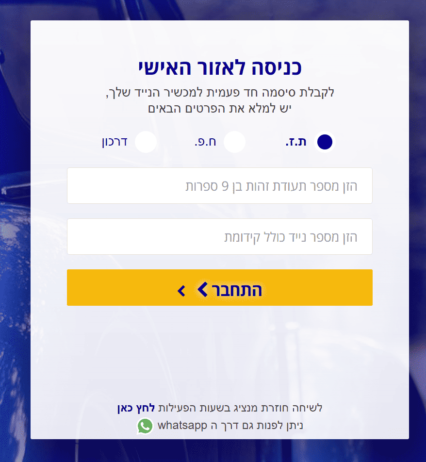 שומרה ביטוח אזור אישי וכניסה לחשבון